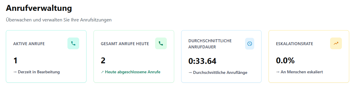 Die Kacheln aktualisieren sich automatisch anhand der Anrufe, die durch den novofon KI-Assistenten geführt wurden. Es müssen keine Anpassungen gemacht werden.